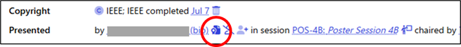 - Click the small certificate icon displayed next to the presenter's name to download the certificate.