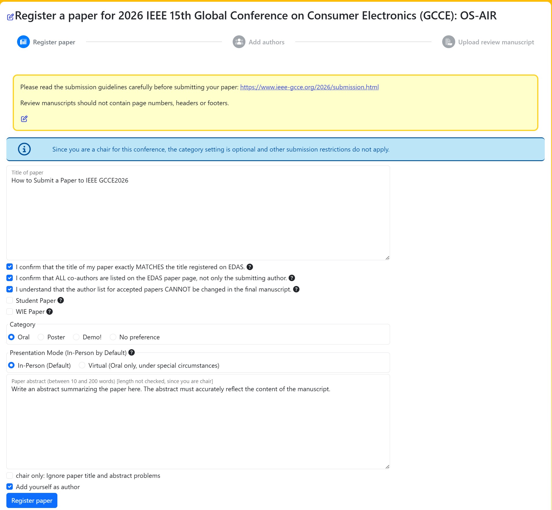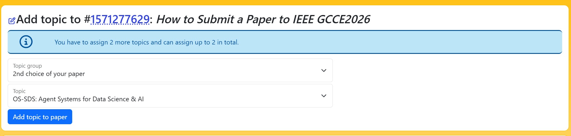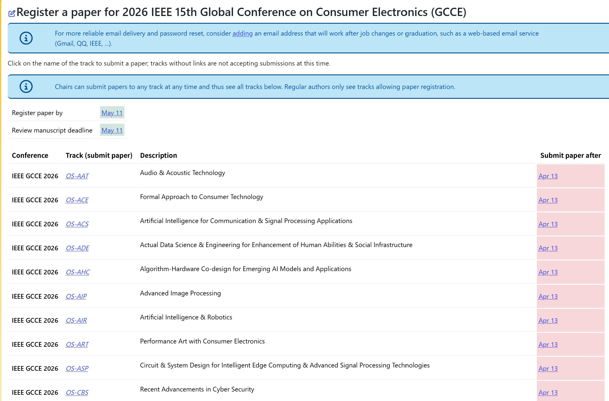 IEEE GCCE 2026 welcomes submissions via the EDAS paper submission system.